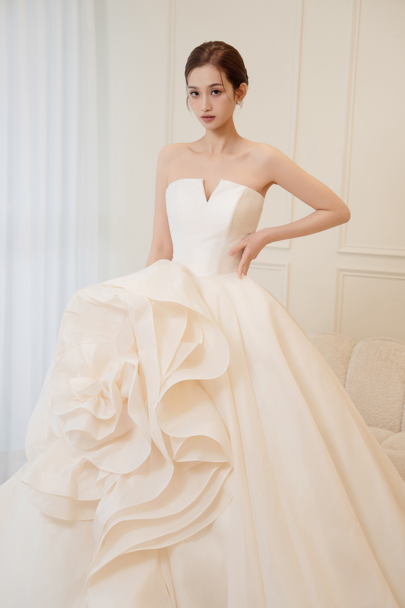 我們相信女人都不該只有一種樣貌,有時典雅、有時性感、有時個性、有時俏皮,我們引領妳找到專屬妳獨特風格的完美婚紗。Designer / Juine yin