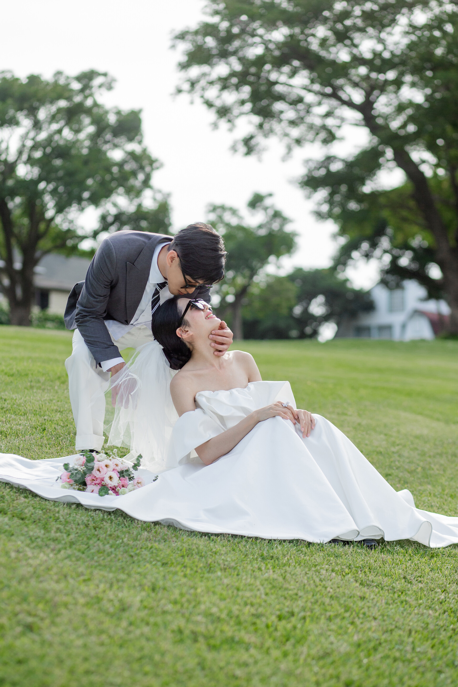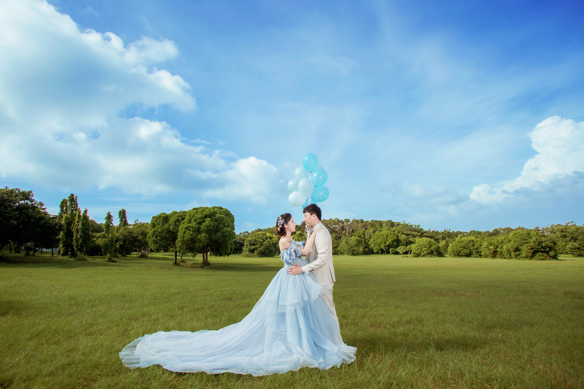 草地婚紗照總帶著一種輕柔的幸福氣息。陽光越過樹影落在肩頭,風把裙襬吹得微微翹起,腳步踩在草地上,彷彿連呼吸都變得明亮起來。自然光影下最真實的笑容,像在大自然懷抱裡的一場溫柔約會。