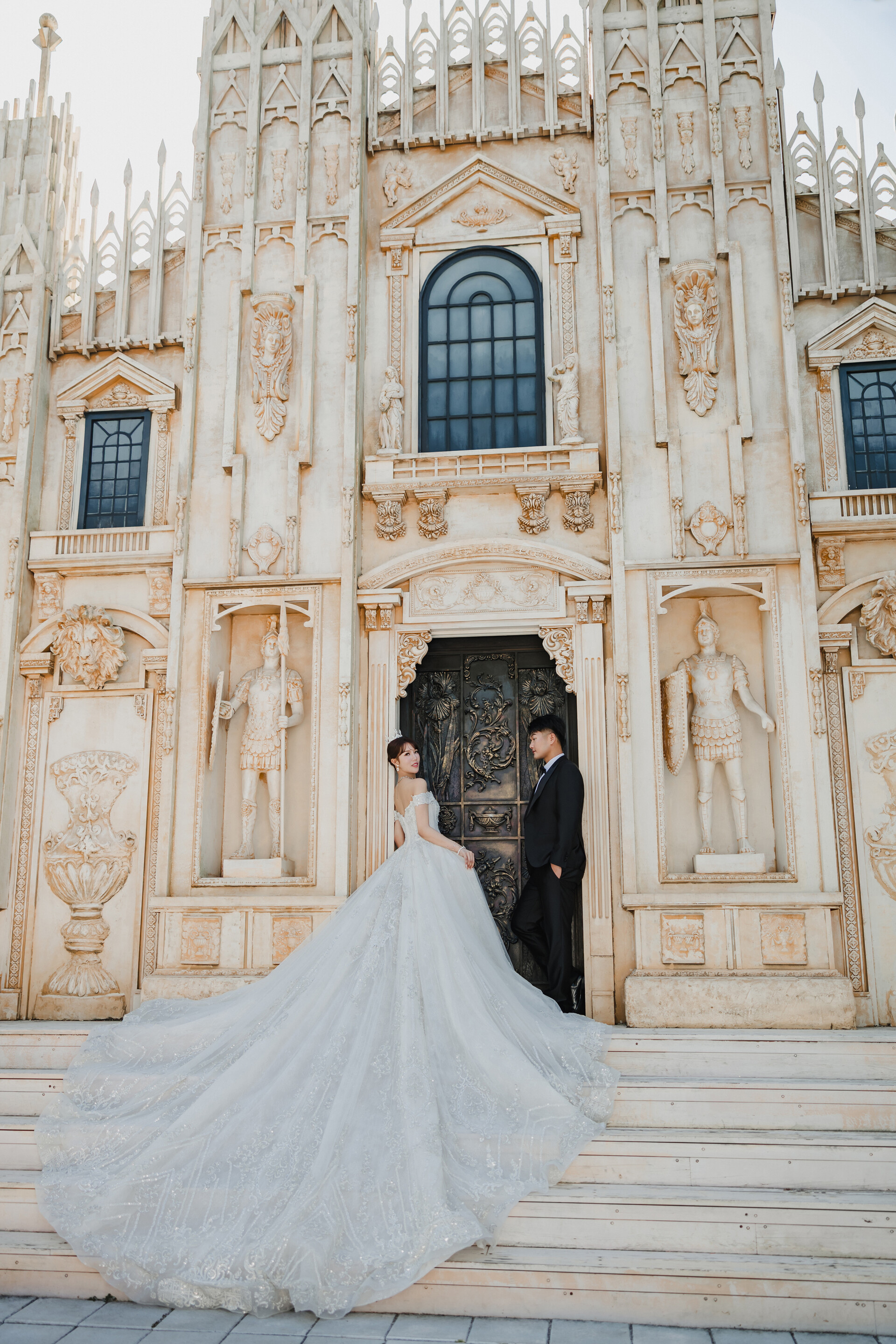 歐式古堡象徵著奢華與儀式感,彷彿變身成皇室貴族的王子與公主,舉手投足之間流露從容與優雅,步伐緩慢而自信,只留下莊重而浪漫的瞬間。
